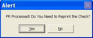 You may select the “Standard” or the “Customized” format to print your payroll check. [Show Deduction and Net Pay] button: you may click this button to see the calculations and make changes if necessary before you process this paycheck. You can cancel it by clicking the [Cancel] button to return to the previous menu. Click on [Process] button to process the payroll or print payroll check: (Figure 10) After you click the [Process] button, there will be a pop-up message asking you if you want to print a check: If you have already paid the employee with a manual check or if this is an old payroll record to redo the process, then you may want to choose “No” without printing an actual check while the payroll is recorded in this payroll program. It will always ask you again if you want to reprint a check in case the check is jammed or damaged during the printing process or you may change your mind after the payroll processed: Click on [No] if do not wish to reprint the check again. Step 6: Reprint a check after processed: Click on [Pay in Batch] è Select a check number to reprint VI. To view an employee Record, Employee List, View Entry, Payroll Register, or print 940 and 941 Report. Click on the following four (4) folders to view the frequent reports: